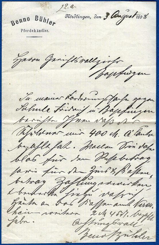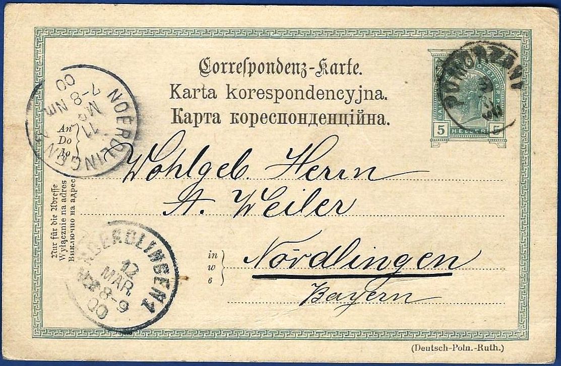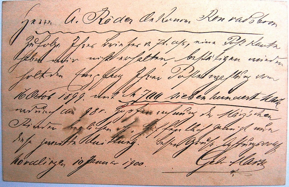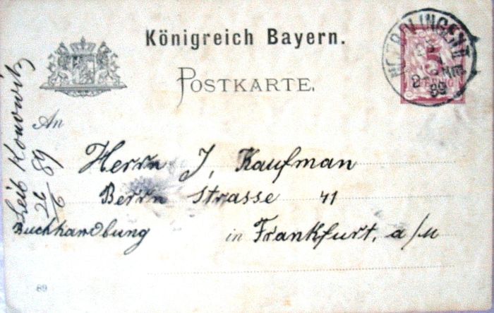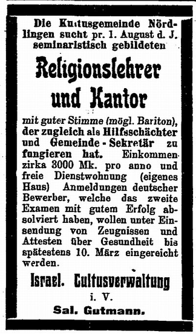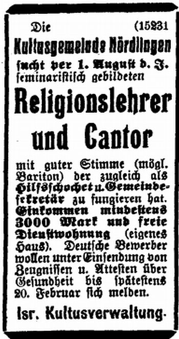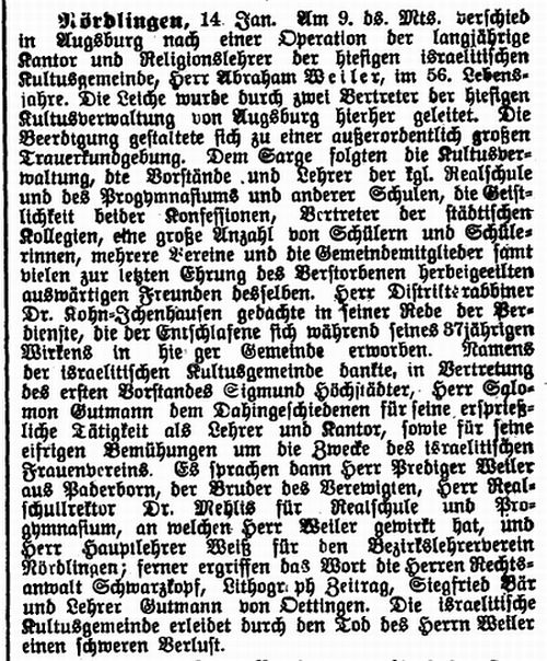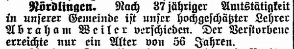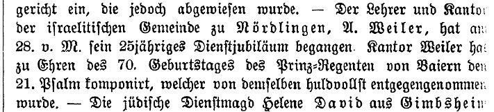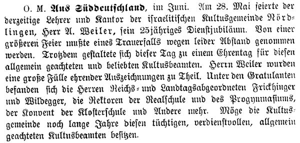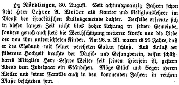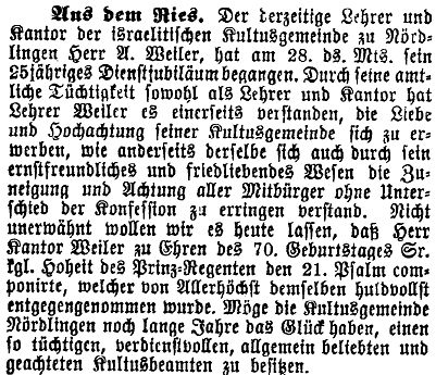 an Lehrer Abraham Weiler in Nördlingen (1900)