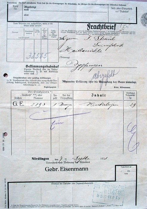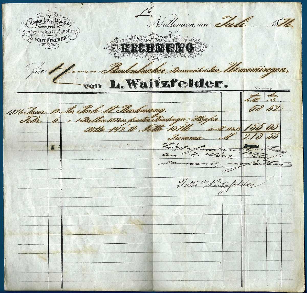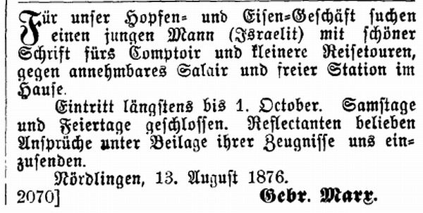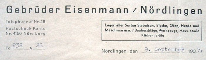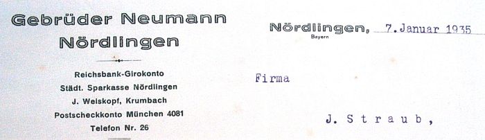 & Sons in Nördlingen. Reminiscence of a Formerly Well-Known Natural