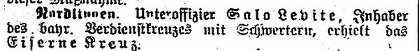 Salo Levite wird mit dem Eisernen Kreuz ausgezeichnet (1917)