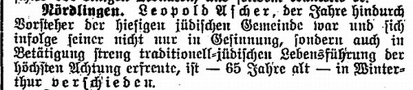 Tod des langjährigen Gemeindevorstehers Leopold Ascher (1916)