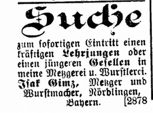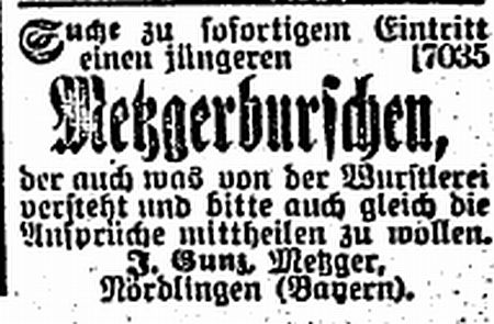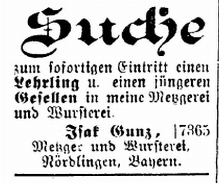 von Metzger und Wurstmacher Isak Gunz (1901 / 1902)