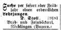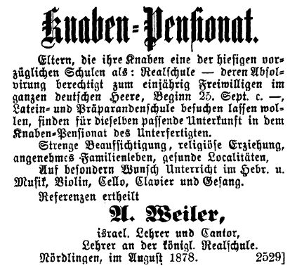 Abraham Weiler betreibt ein Knaben-Pensionat (1878)