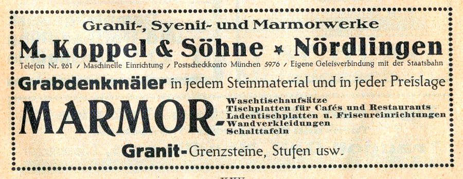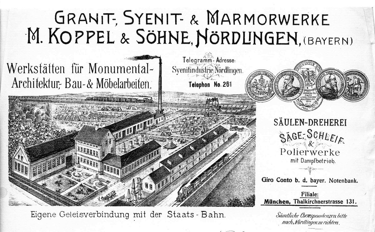 Marmorwerken" von Max Koppel (aus Kleinerdlingen stammend)
