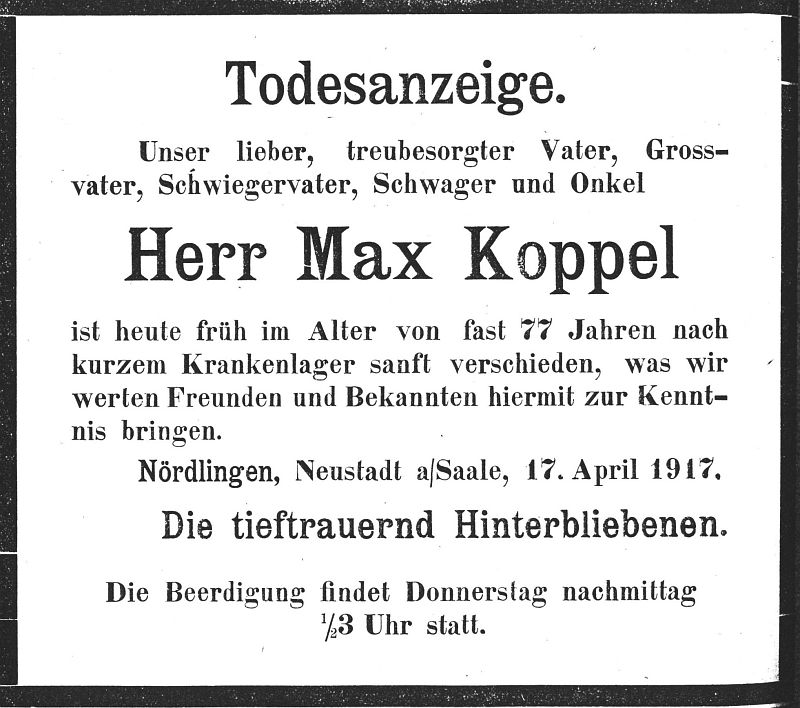 (gest. am 30. Dezember 1936 in Nördlingen), ihre Mutter war Nanni, geb.