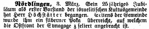 Beiträgen zur jüdischen Geschichte in Nördlingen wurden in jüdischen Periodika