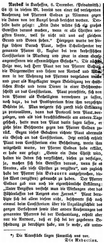 Auseinandersetzung mit dem antisemitisch eingestellten Pfarrer Soldau im