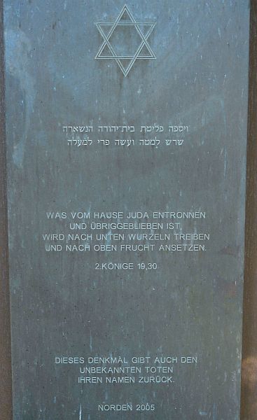 Synagogengemeinde Norden eingeweiht. Das Mahnmal wurde vor allem auf Grund der