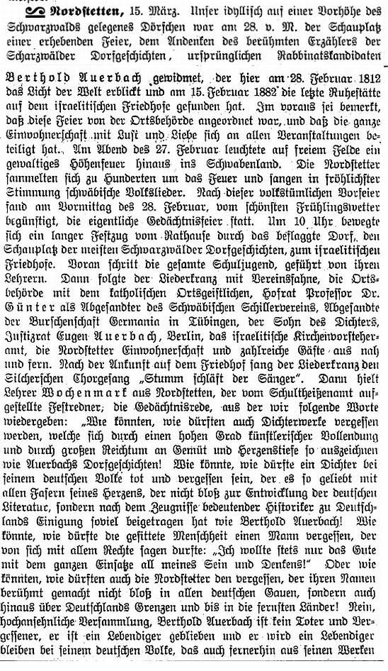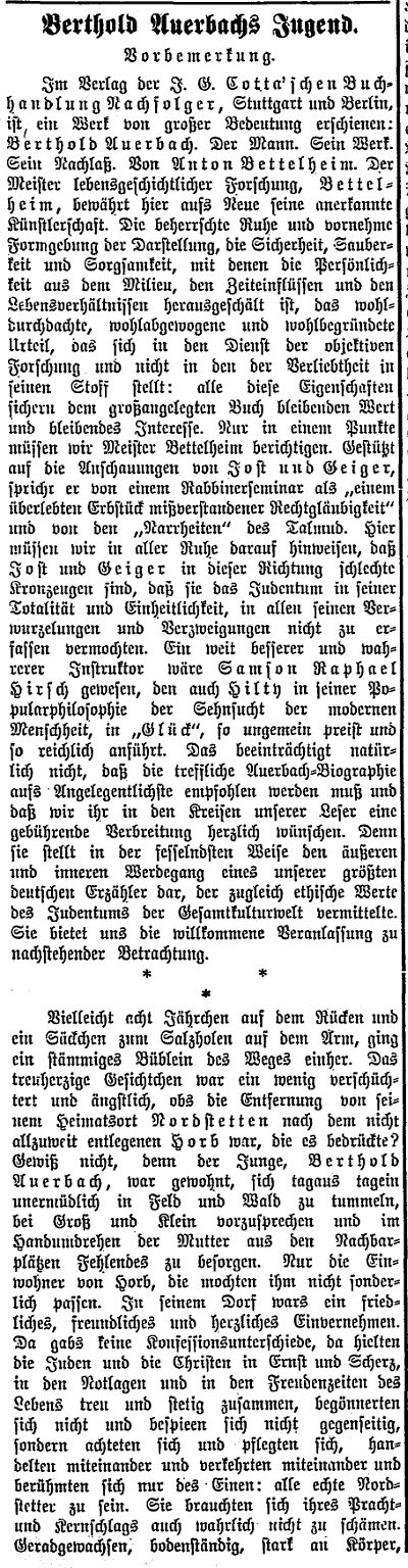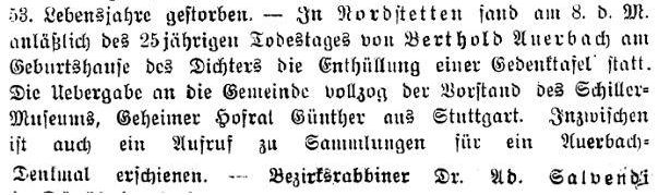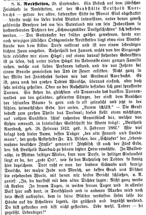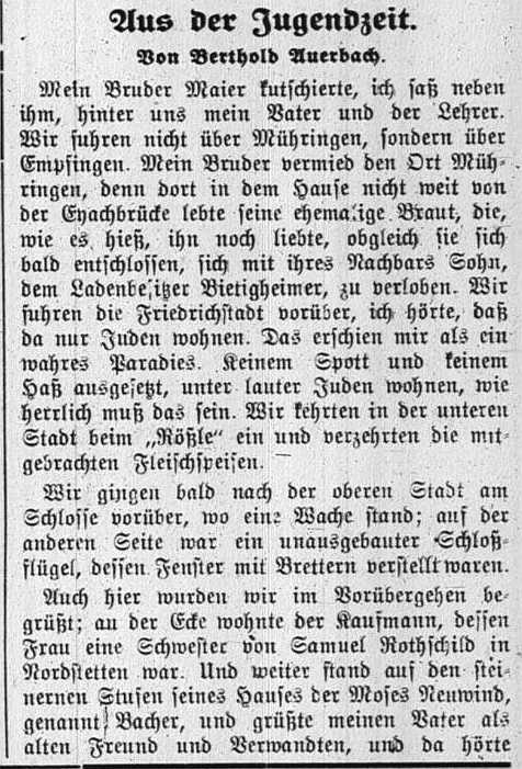 Beiträgen Berthold Auerbach aus Nordstetten wurden in jüdischen Periodika