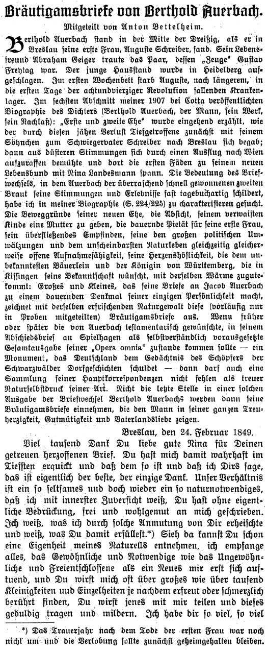 von Berthold Auerbach (Artikel von Anton Bettelheim 1910)