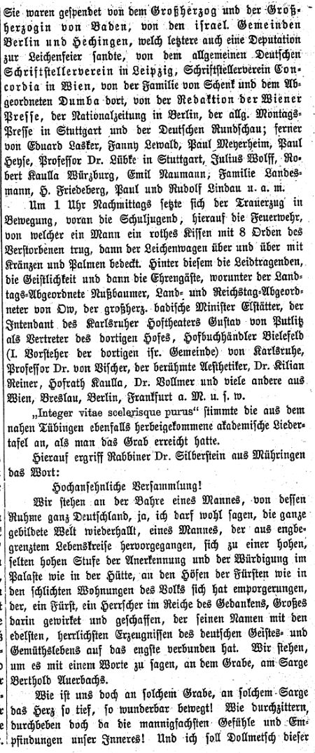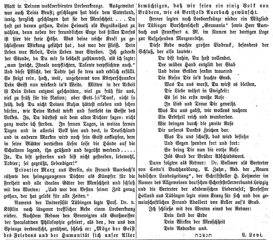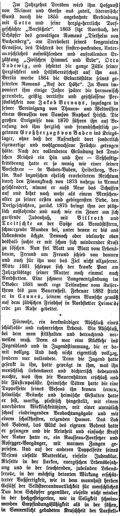 von Ludwig Meyer für Berthold Auerbach (zum 1. Todestag 1883; Artikel von 1932)