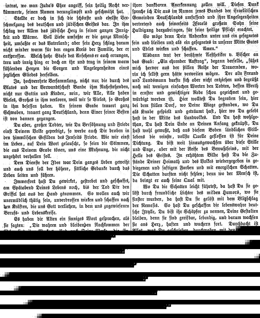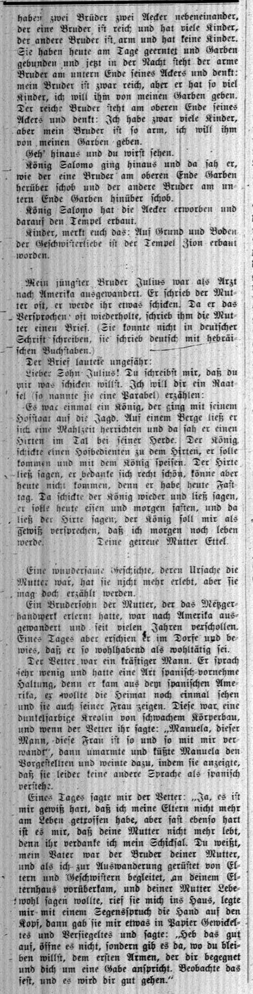 Artikel in der "Gemeinde-Zeitung für die Israelitischen Gemeinden