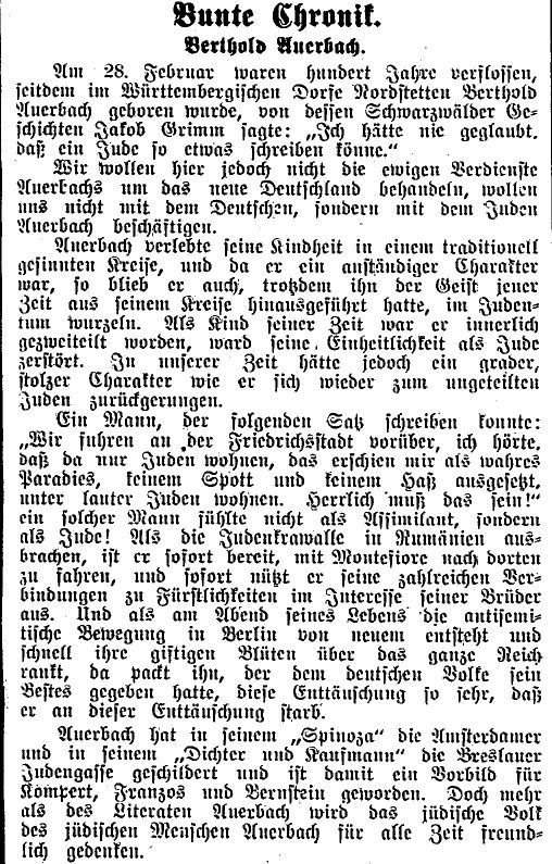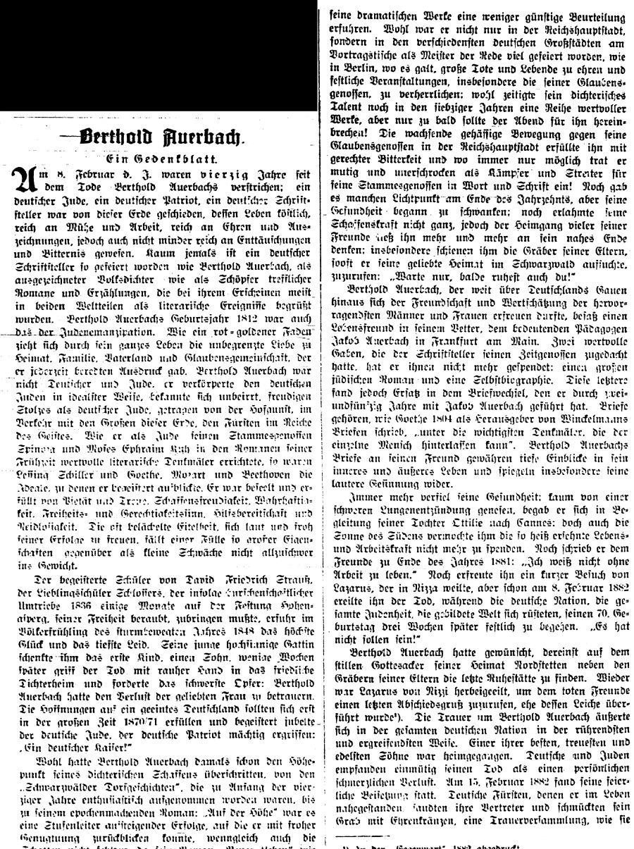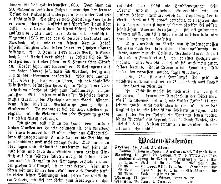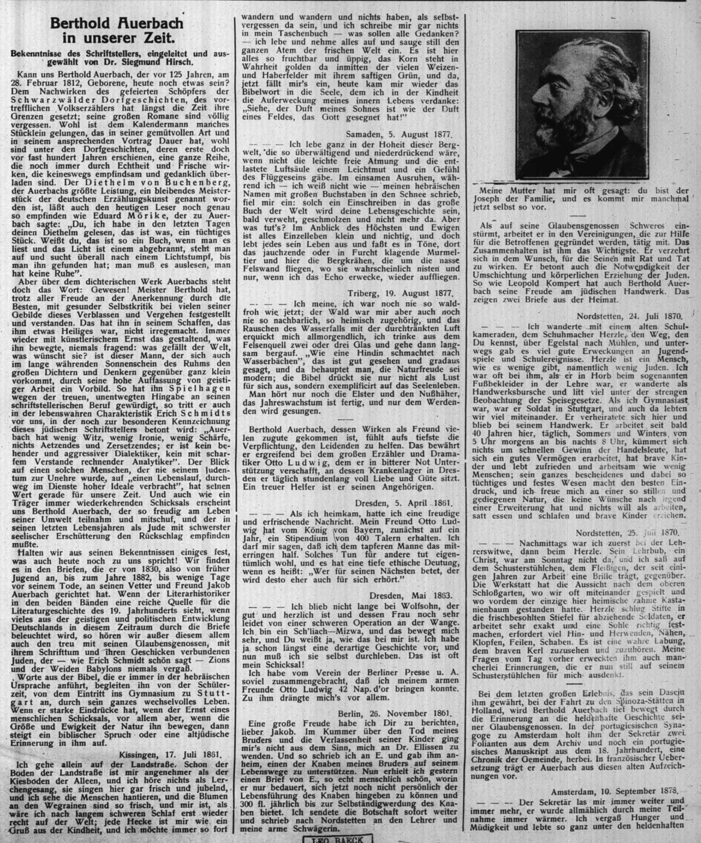 leitete. Für die letztere Zeitschrift verfasste Berthold Auerbach