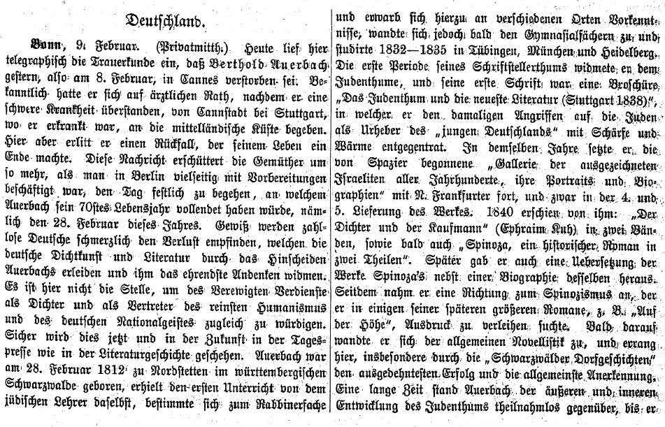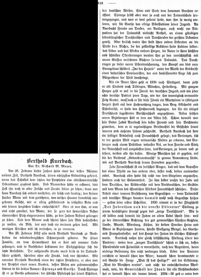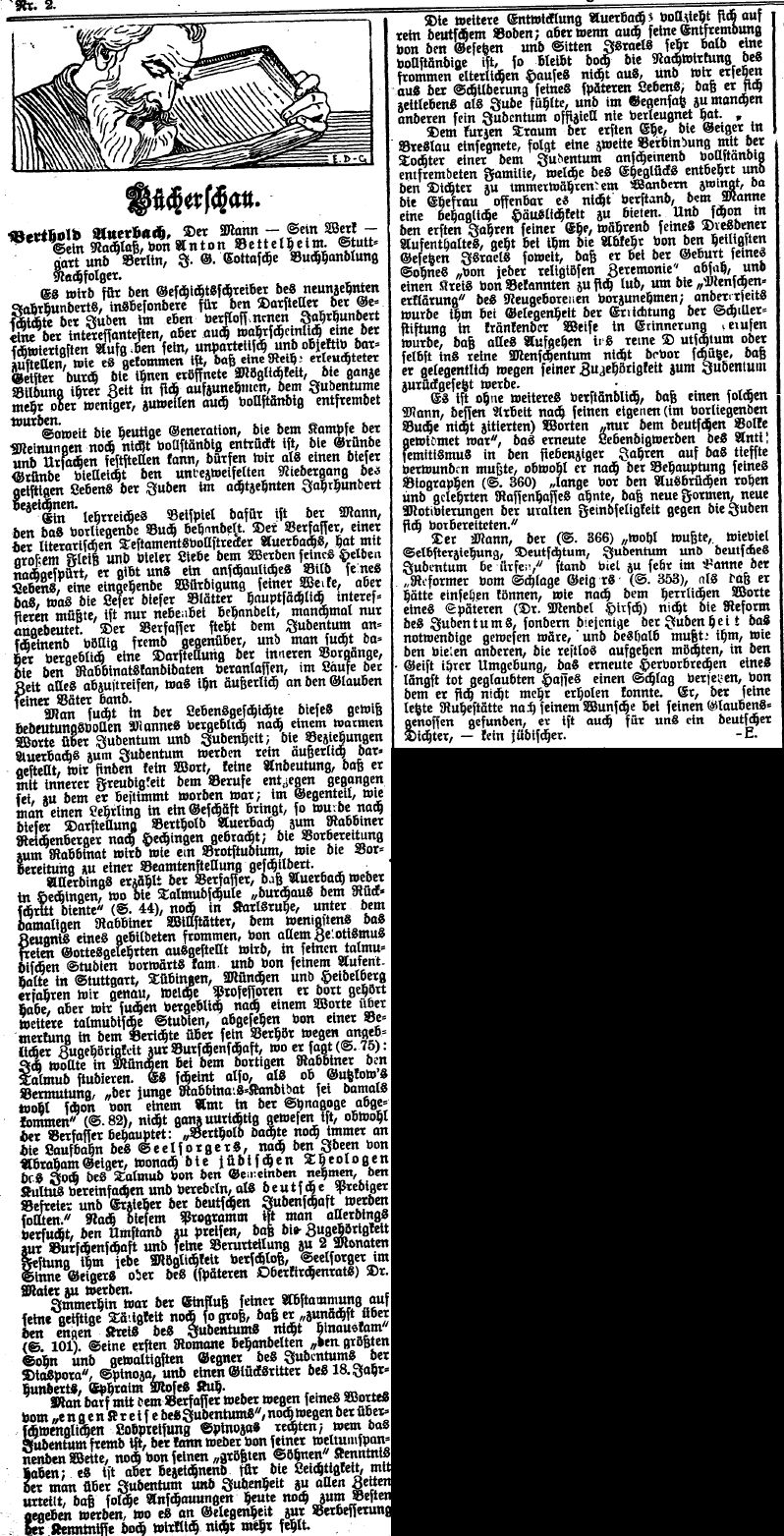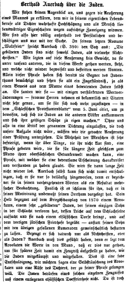 leitete. Für die letztere Zeitschrift verfasste Berthold Auerbach