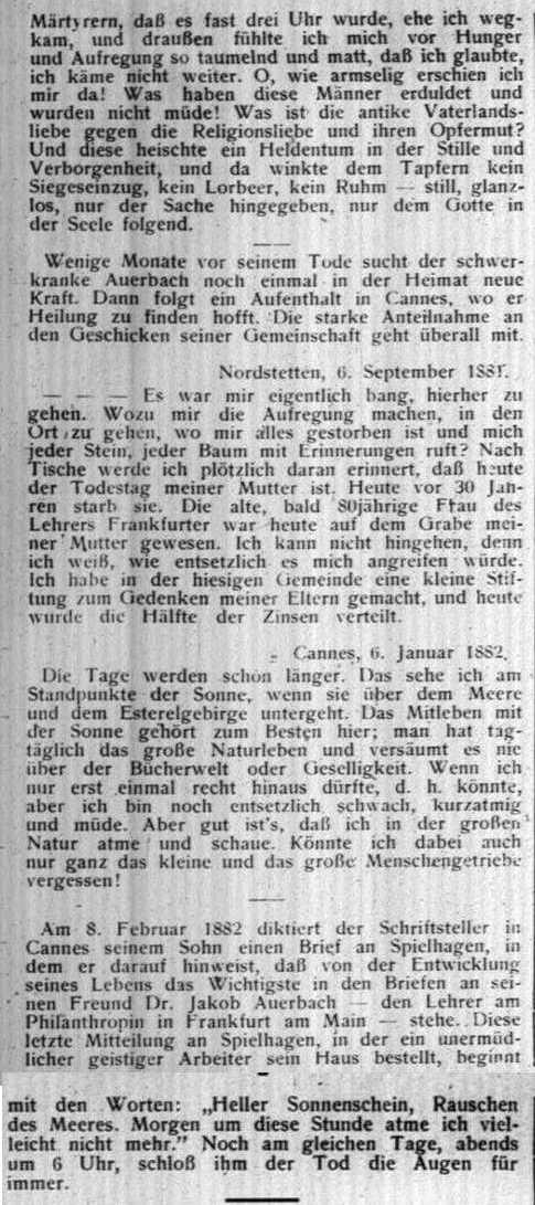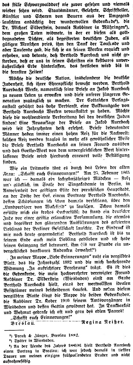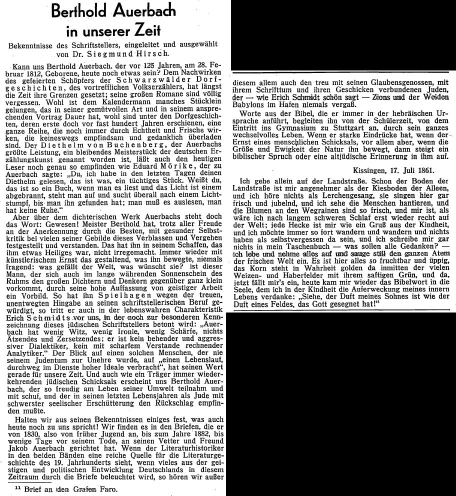 Auerbach in unserer Zeit" (Artikel von Siegmund Hirsch zum 125. Geburtstag