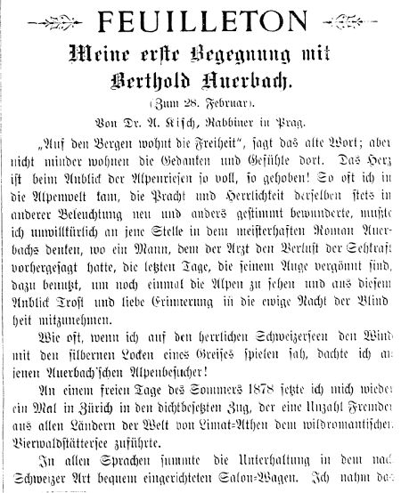 Rabbiner Dr. A. Kisch (Prag) über seine erste Begegnung mit