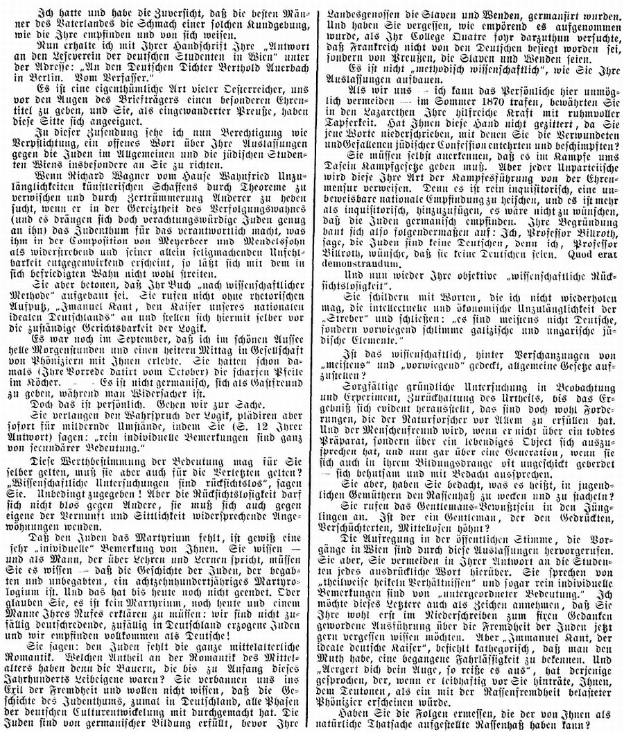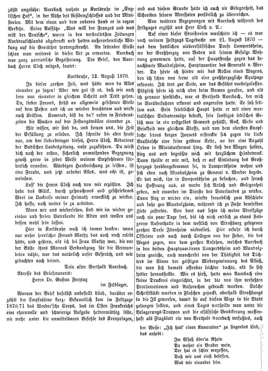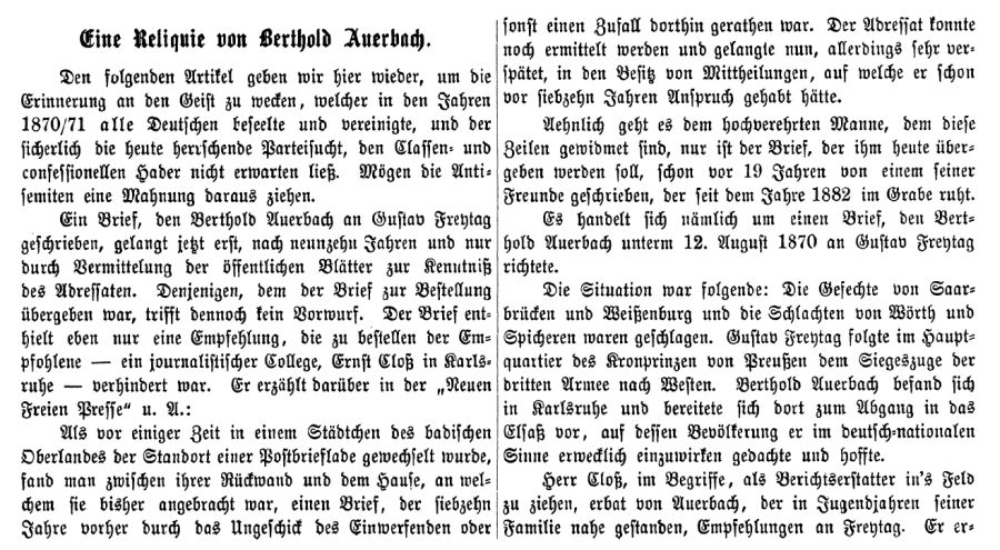 einen Brief von Bethold Auerbach an Gustav Freytag (Artikel von 1889)