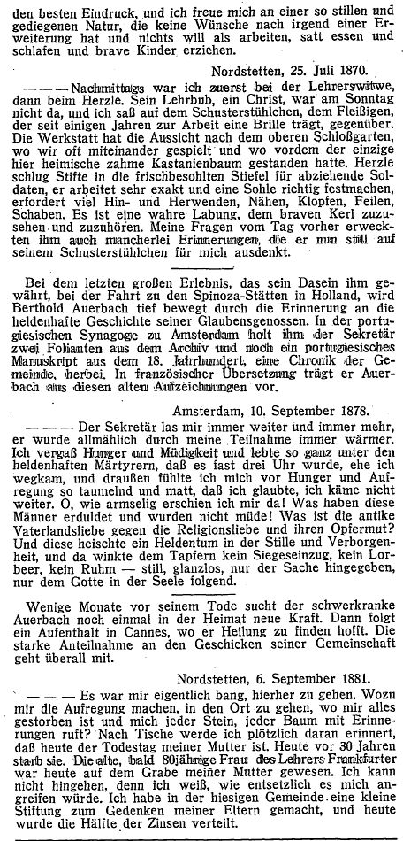 der Jugendzeit" - Beitrag von Berthold Auerbach (abgedruckt 1928)