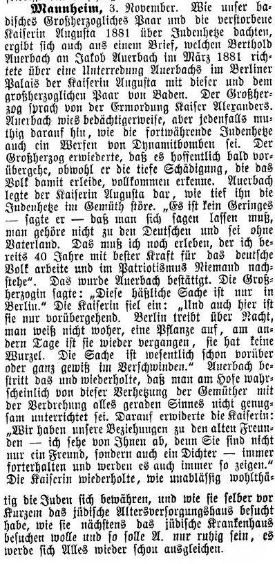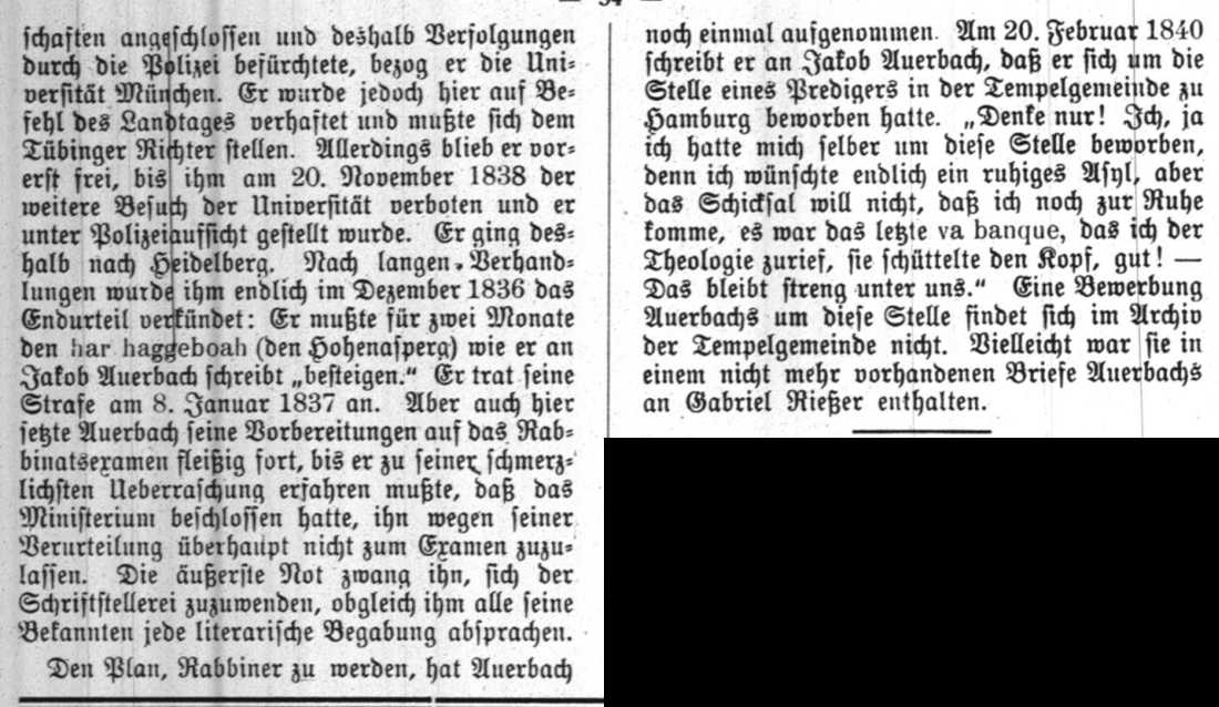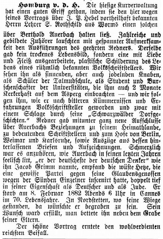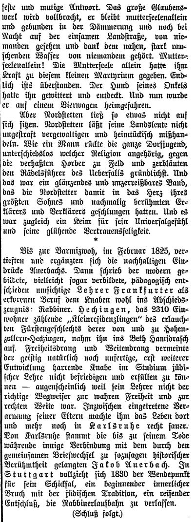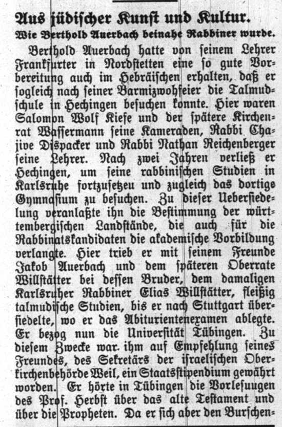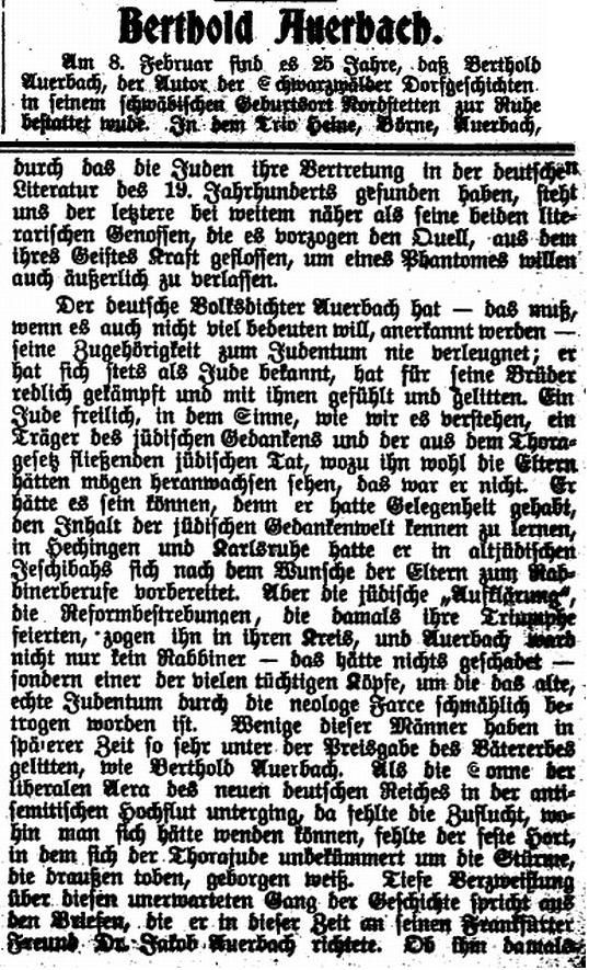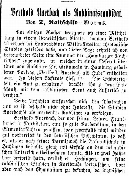 Auerbach als Rabbinatskandidat" - Beitrag von S. Rothschild in Worms (1901)