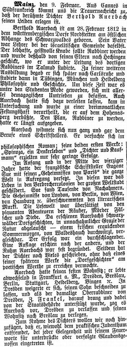 in der "Allgemeinen Zeitung des Judentums" vom 15. Februar