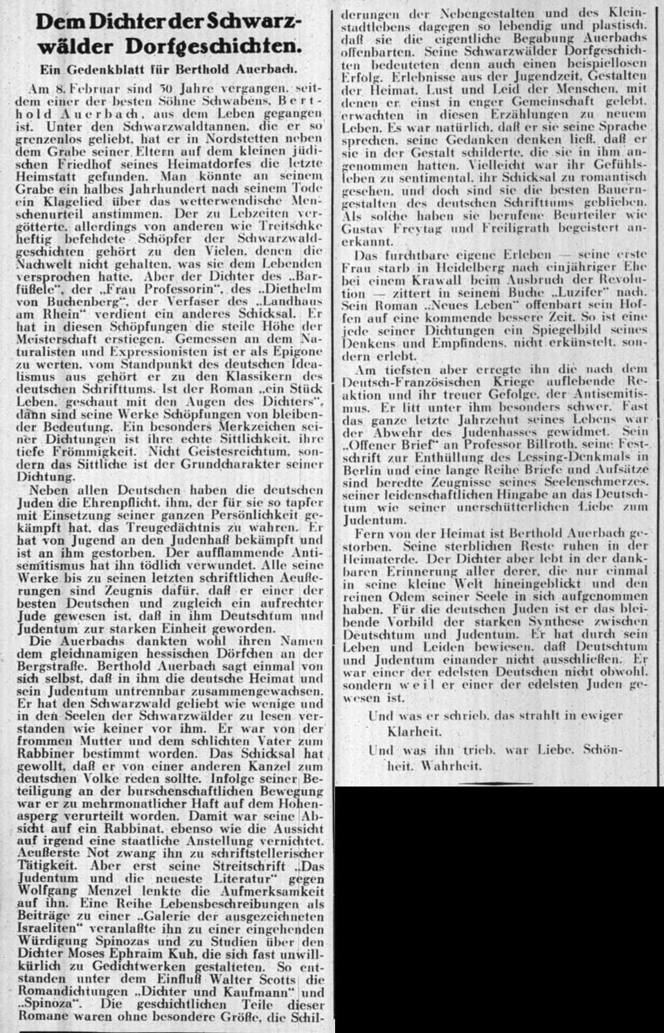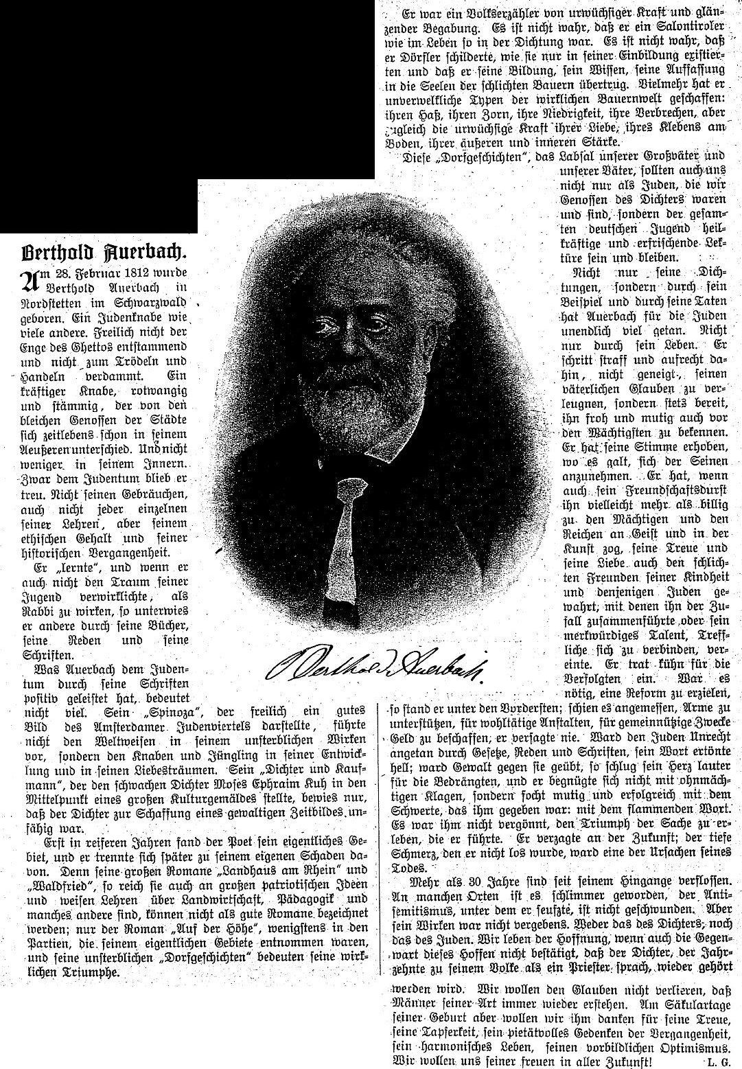 zum 100. Geburtstag von Berthold Auerbach (1912)