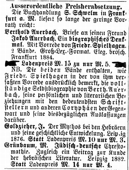 Anzeige in der "Allgemeinen Zeitung des Judentums"