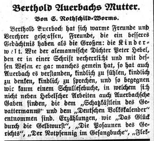 Berthold Auerbachs Mutter (Beitrag von S. Rothschild Worms von 1929)
