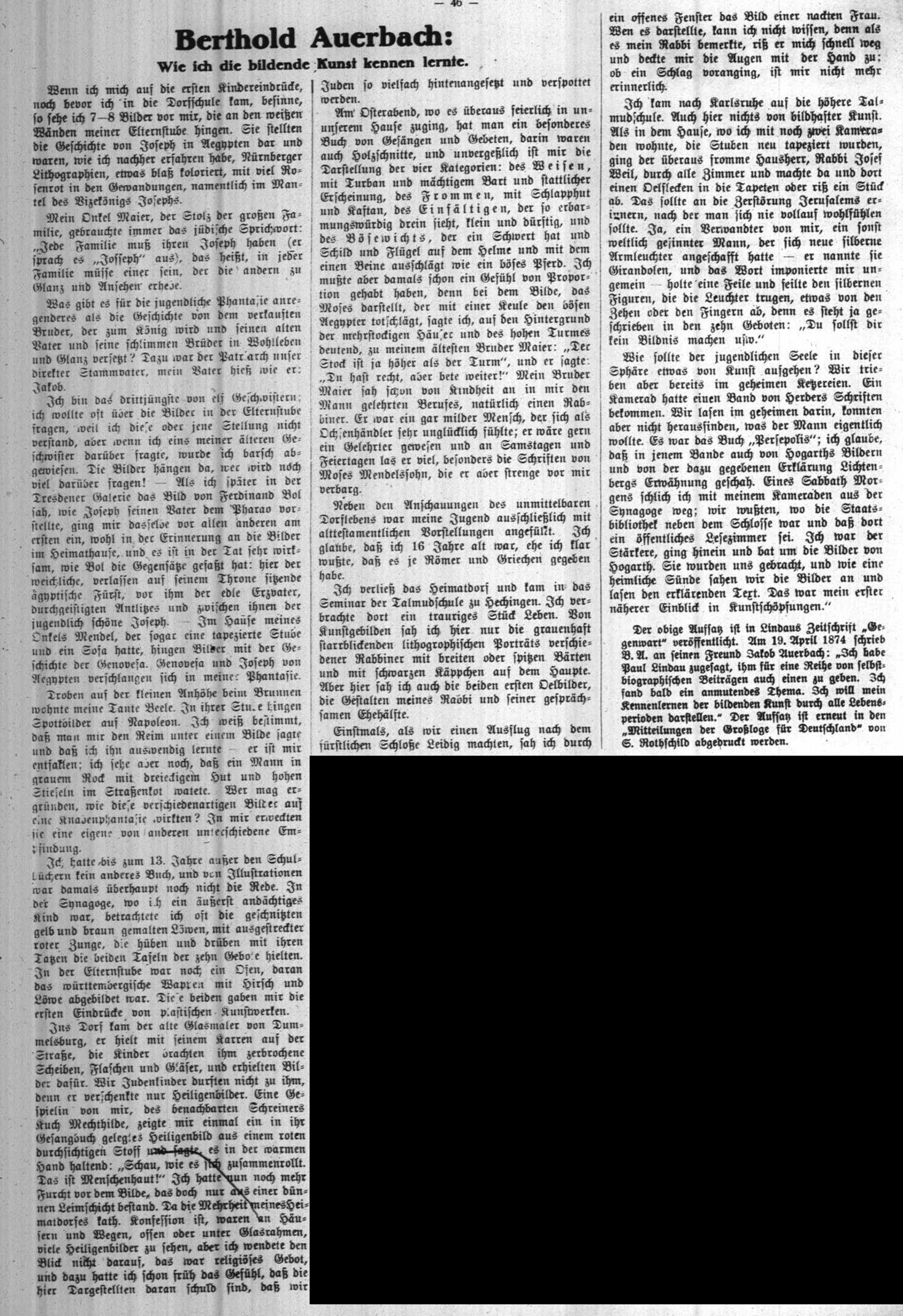 ich die bildende Kunst kennen lernte" (Beitrag von Berthold Auerbach,