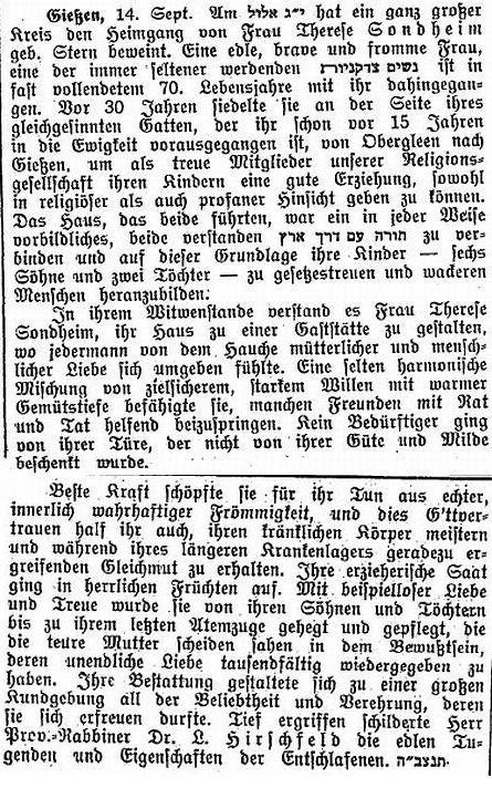 in der Zeitschrift "Der Israelit" vom 8. Februar 1900: "Die