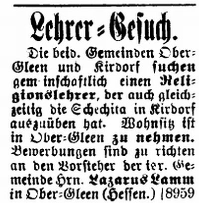 Religionslehrer-, Chasen- und Schochetstelle in den Gemeinden Kirtorf