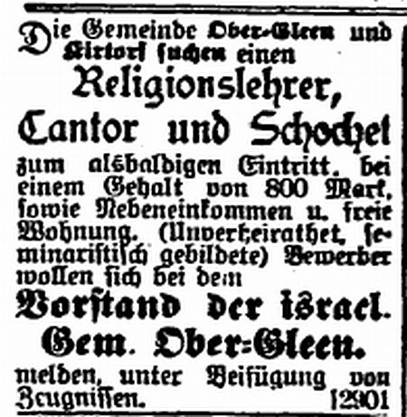 Ober-Gleen genannt, der damals vorübergehend auch die Israelitische