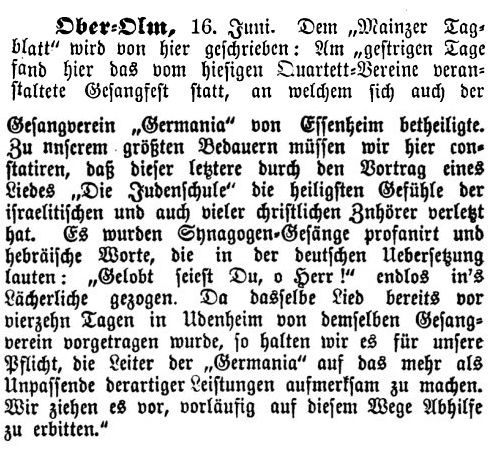 Vorsteherwahl im Jahr 1845 waren 21 Essenheimer Juden und zehn aus Ober-Olm