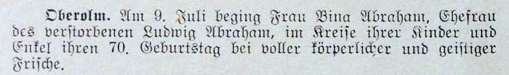 Von den Gemeindevorstehern werden genannt: um 1887/88 L. Abraham, um