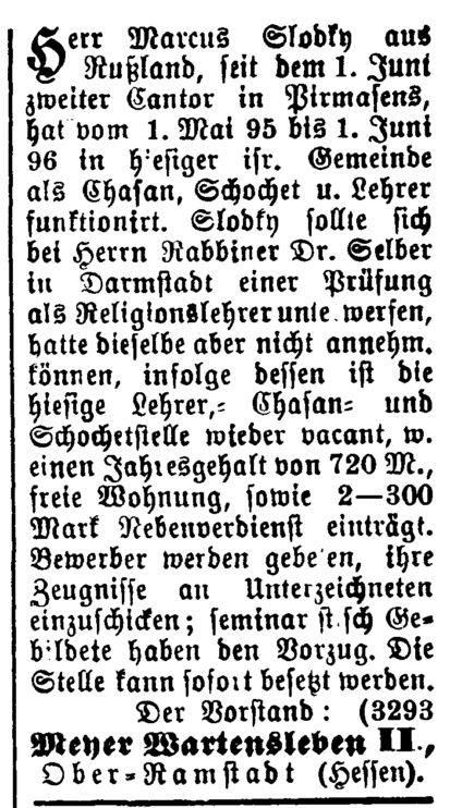 in der Zeitschrift "Der Israelit" vom 25. Juni 1885: "Ober-Ramstadt,
