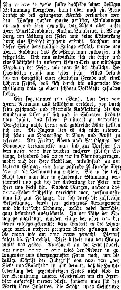 Gemeinde gehörte zum Rabbinatsbezirk Würzburg.