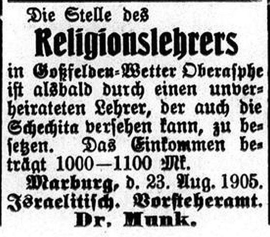 Kinder teilweise nach Battenberg oder nach Wetter. 1901 erteilte Lehrer Moses