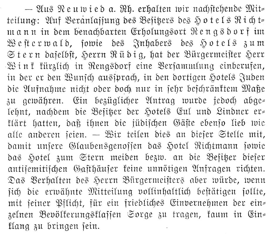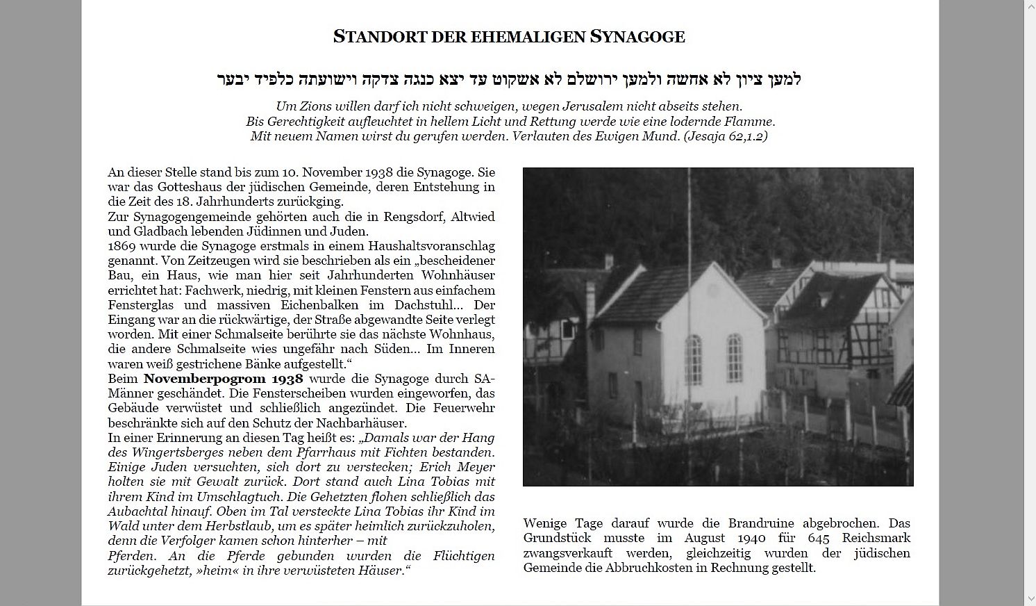 Zur Synagogengemeinde gehörten auch die in Rengsdorf, Altwied und Gladbach