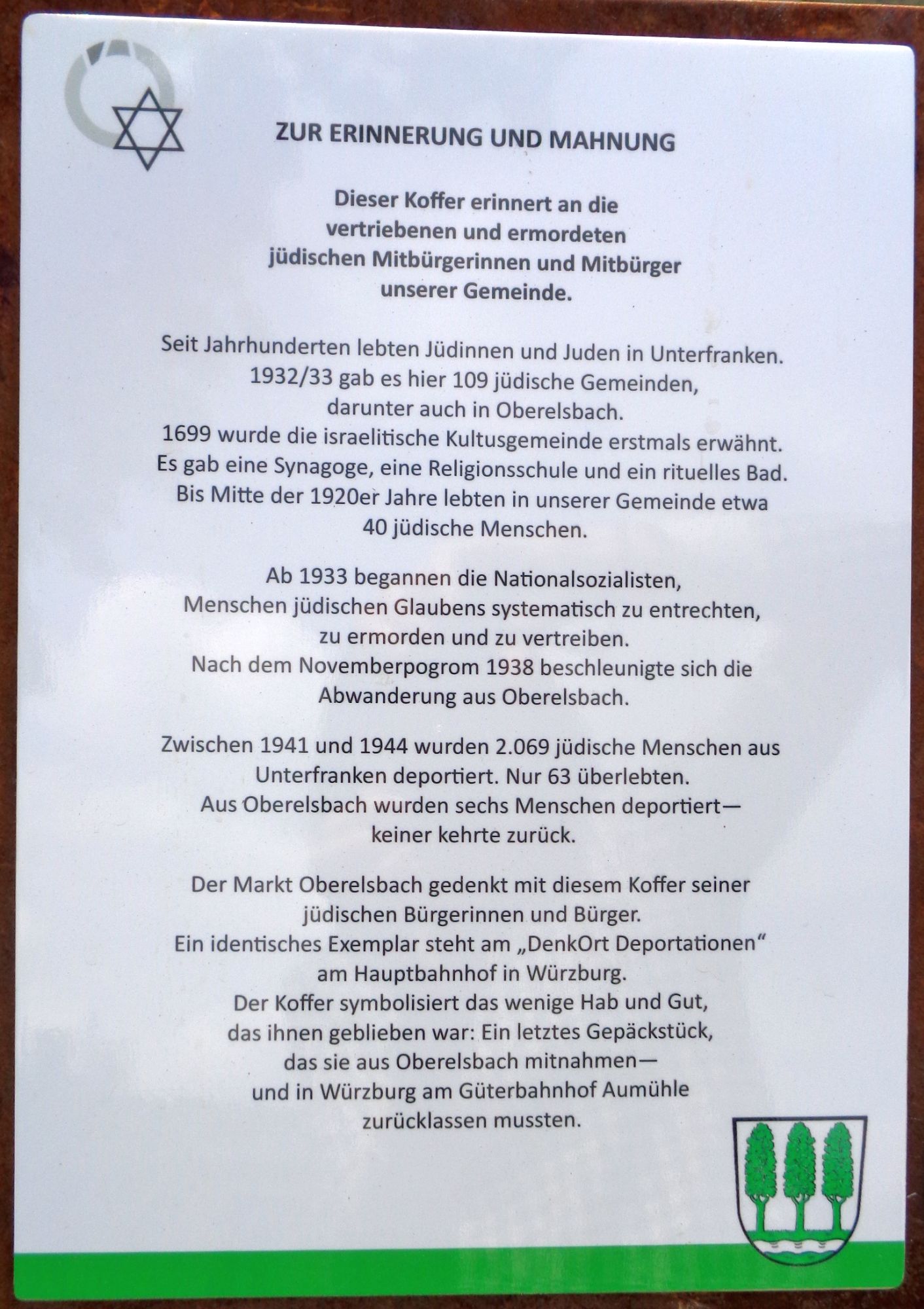 die Jüdische Gemeinde Oberelsbach und fügt sich mit den Gepäckstücken