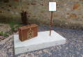 Text der Tafel: "Zur Erinnerung und Mahnung. Dieser Koffer