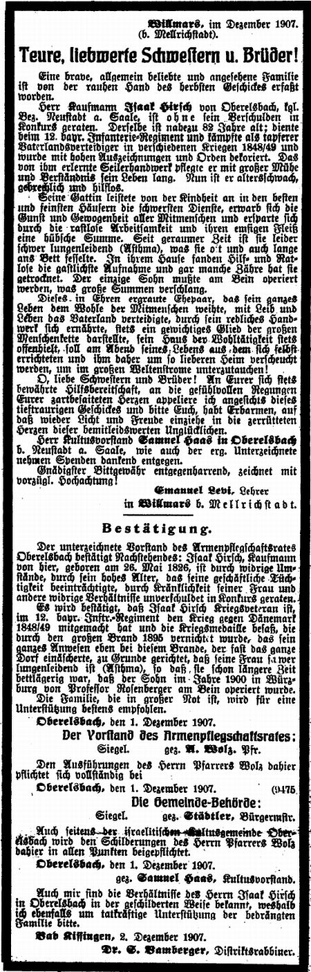 Oberelsbach aufgelistet. Die Zahl der jüdischen Einwohner nahm im 18.