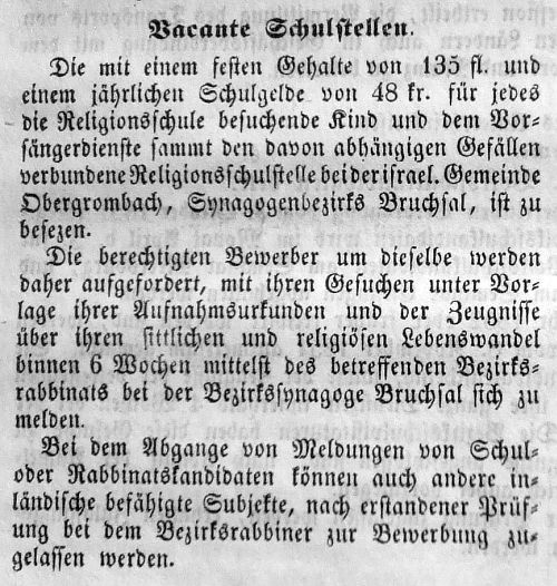 jüdische Gemeinde dem Rabbinatsbezirk Bruchsal zugeteilt.