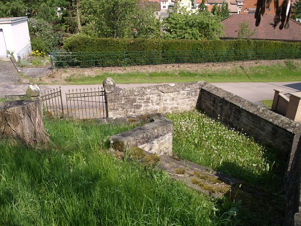 erhalten, dazu Fragmente von Grabsteinsockeln.