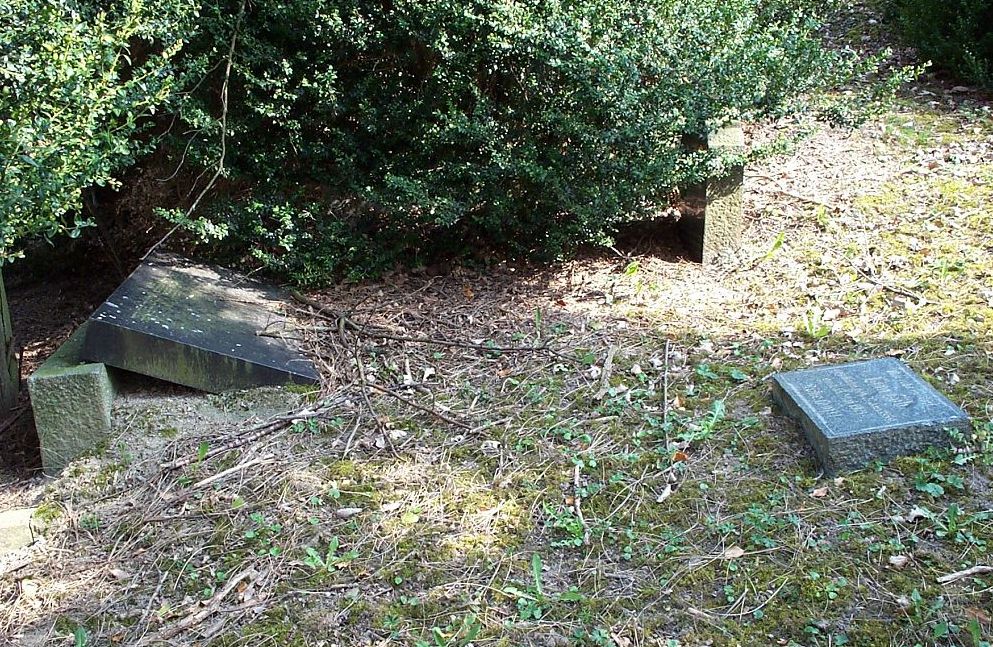 Friedhof geschändet und teilweise zerstört. Es sind etwa 70 Grabsteine