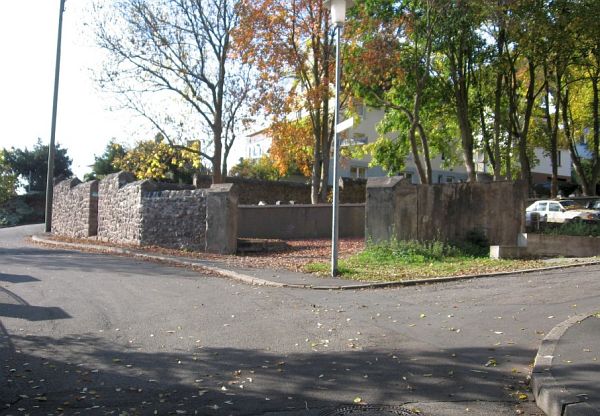 sich weitere Grabsteinfragmente und -einfassungen. An der Seitzenbachstraße ist
