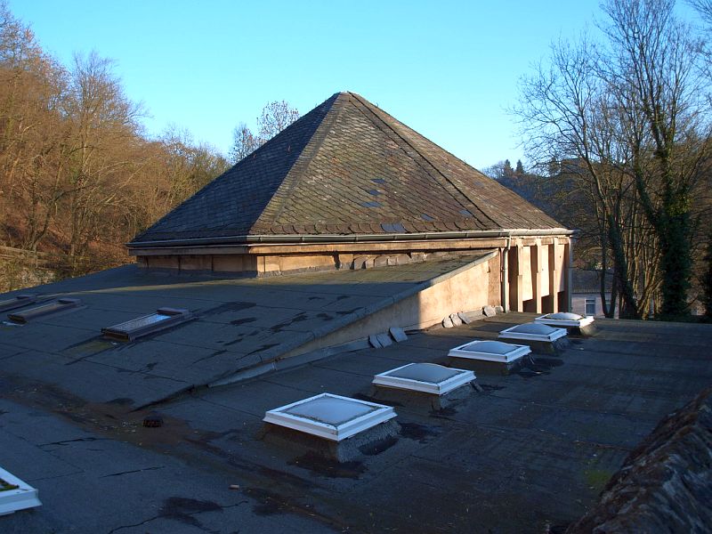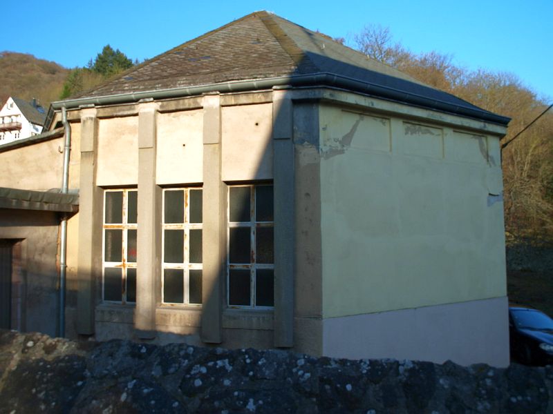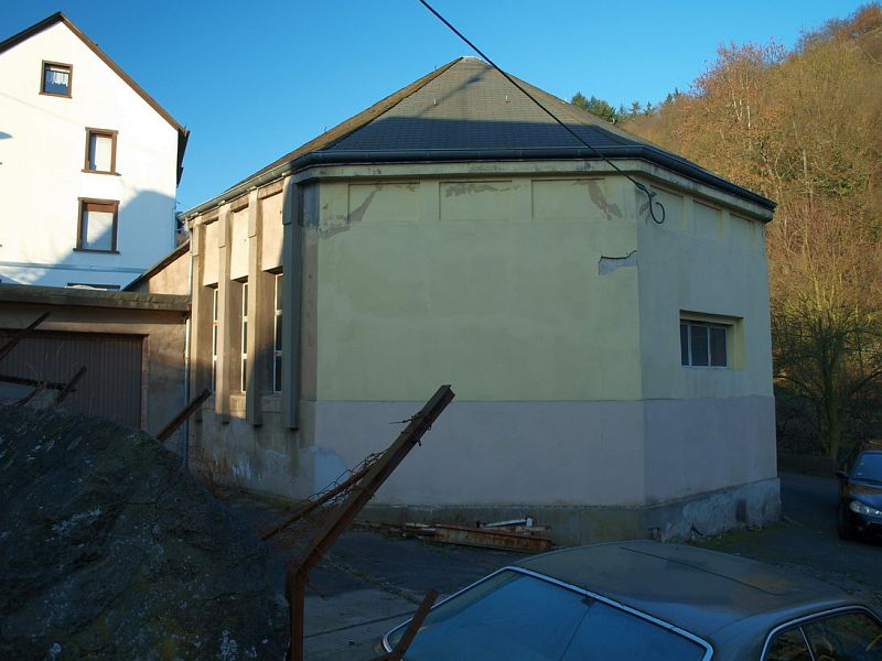 die als Werkstatt verwendet wird, ein Zentralbau mit Pyramidendach (vgl. Fotos