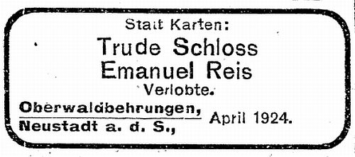 am Main nach Oberwaldbehrungen gewechselt ist (vgl. Verlobungsanzeige von