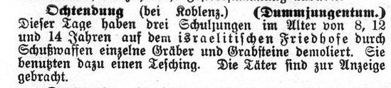 israelitischen Friedhofe durch Schusswaffen einzelne Gräber und Grabsteine