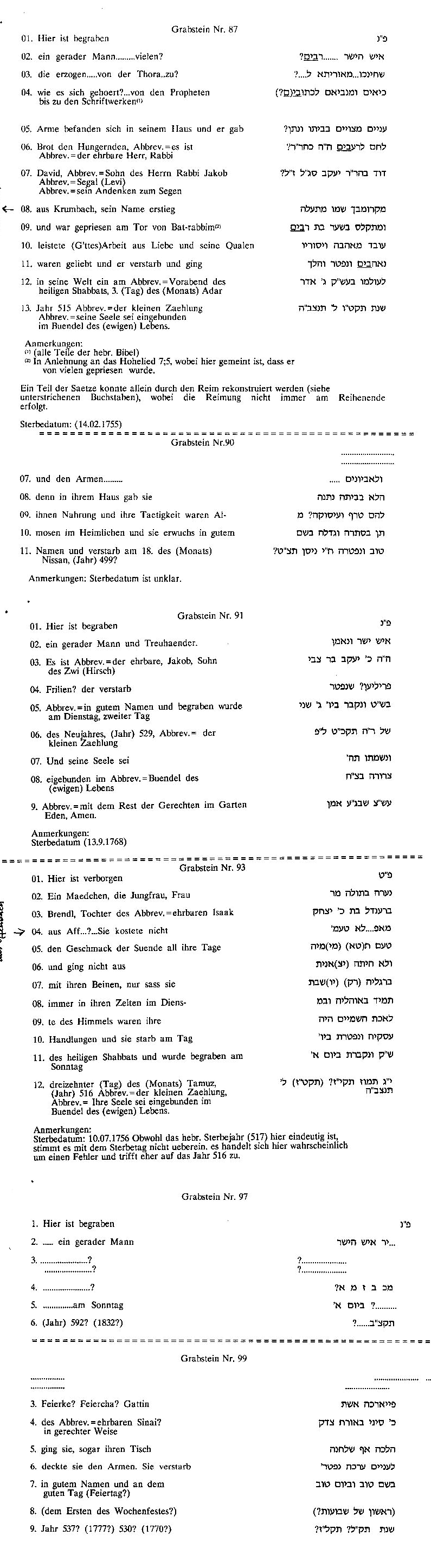 von 1755 (bereits nach Angaben der Beschreibung von Landesrabbiner Dr. Alex