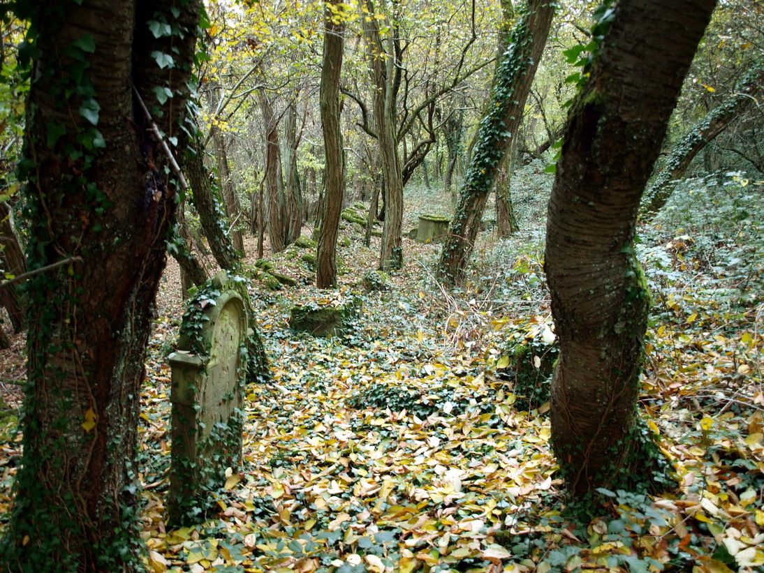 Grabsteine stehen noch aufrecht, viele liegen flach auf der Erde. Der