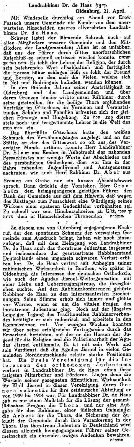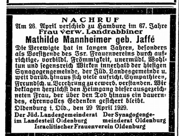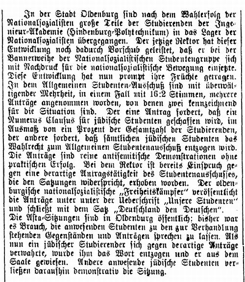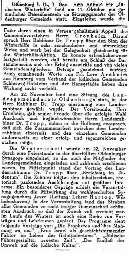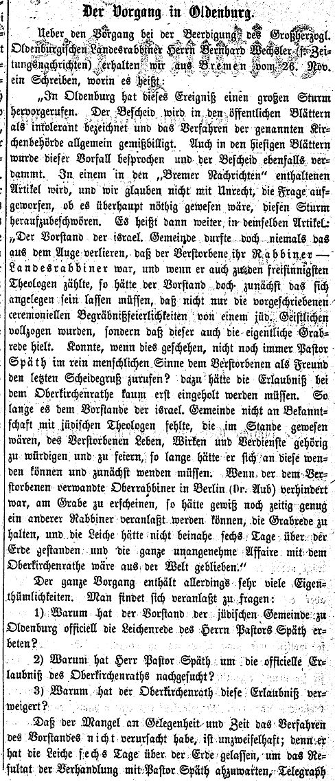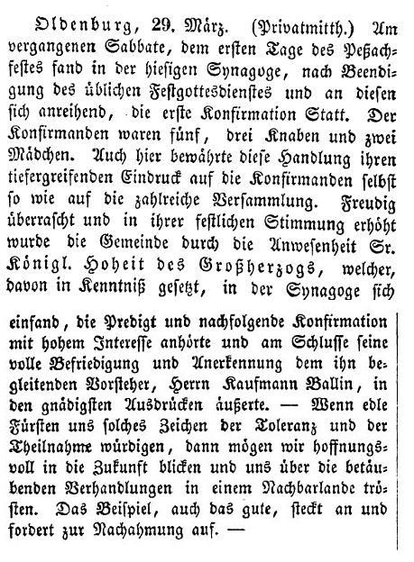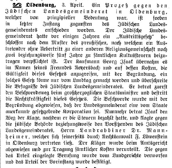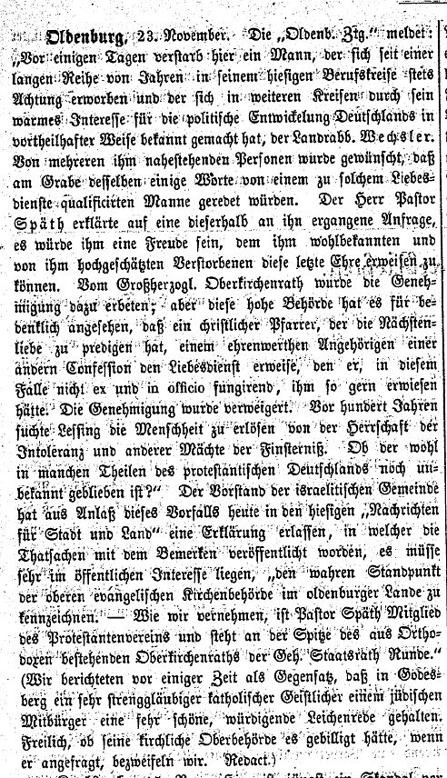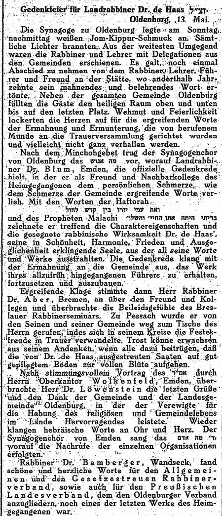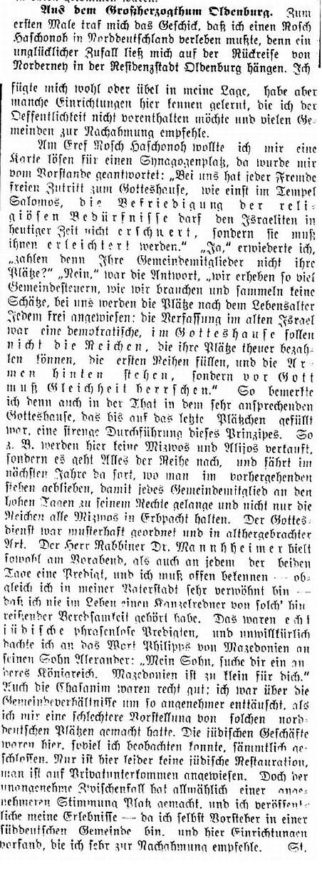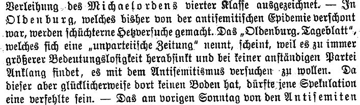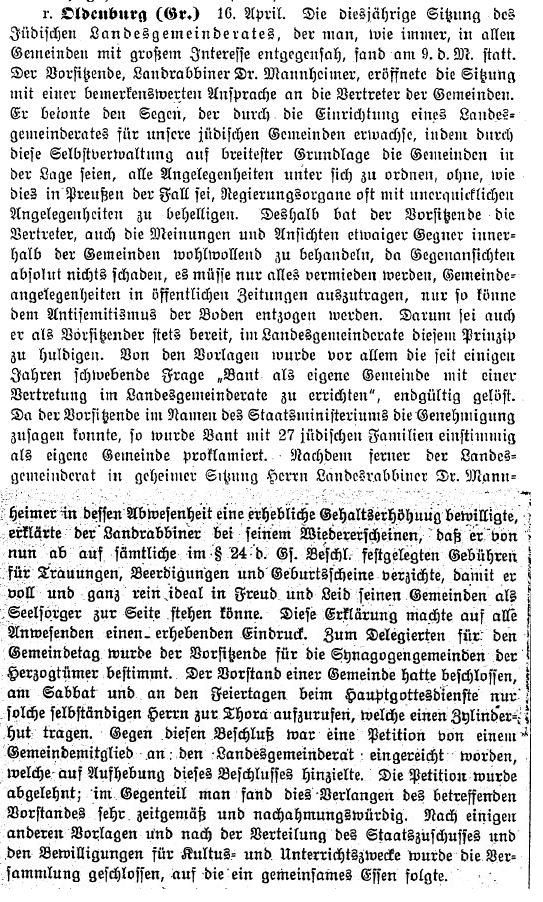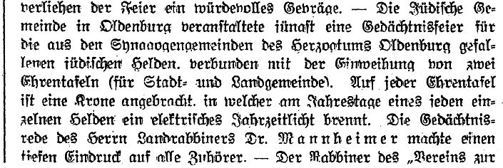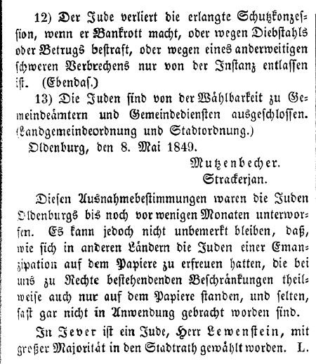 desselben unwert, kann, zur Ehre der Oldenburger Juden sei es gesagt,