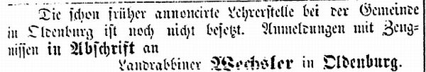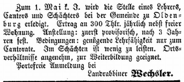 israelitischen Lehrling. Oldenburg (Großherzogtum). S. L.